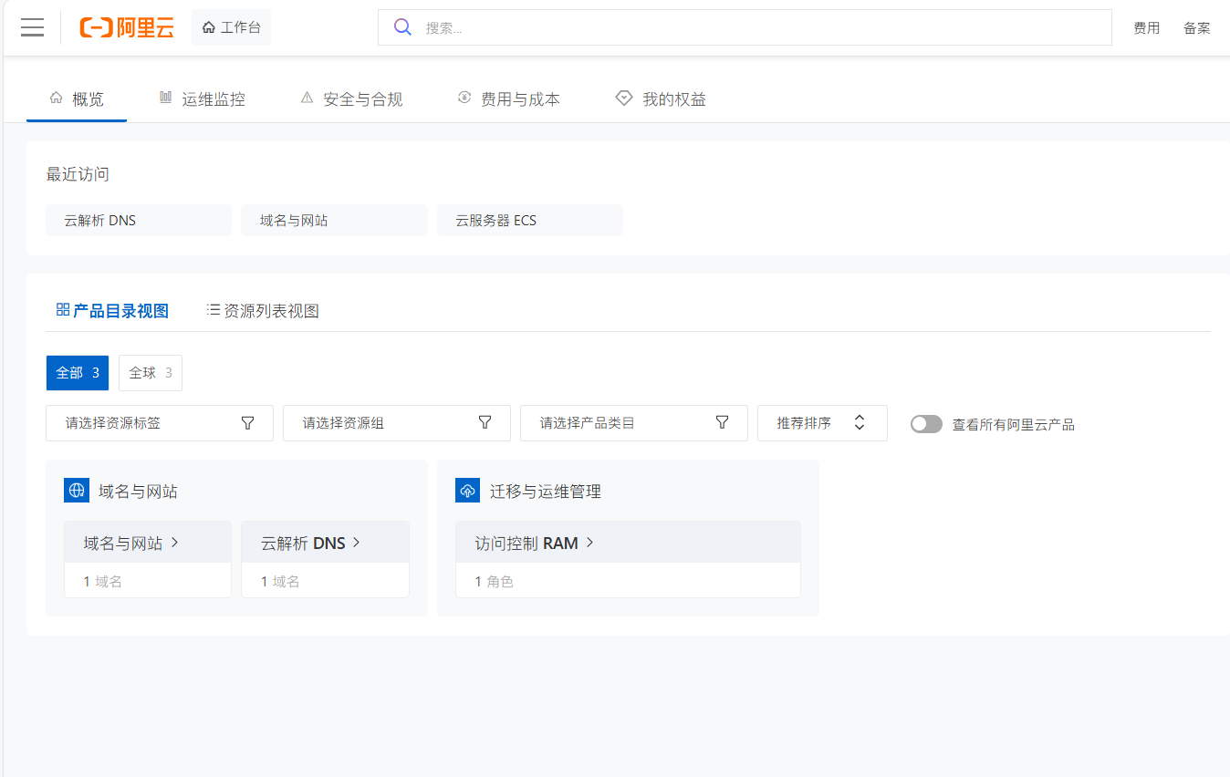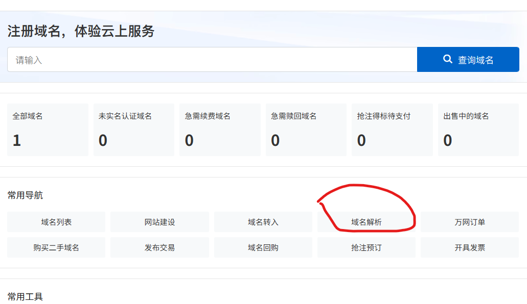 进入你申请域名的平台,这里使用阿里云,打开阿里云进入控制台,进入域名与网站