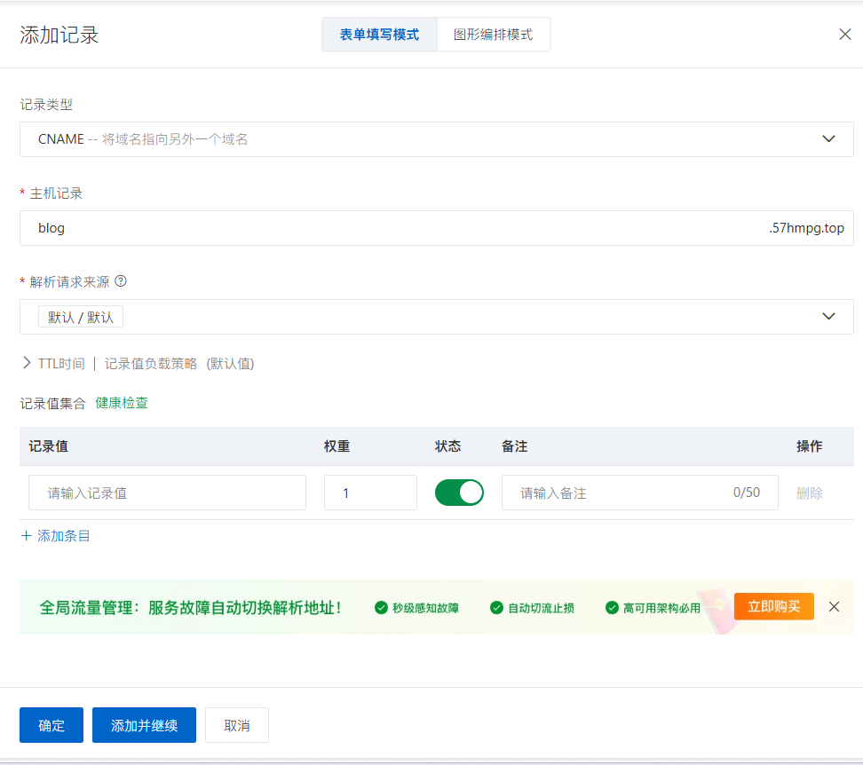 回到阿里云修改刚才的主机记录,我们要重新设置记录值。这里有一些可以提升国内访问速度的解析地址可供选择: